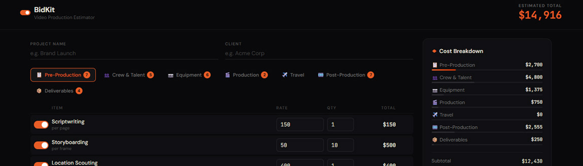 BidKit - Video Production Estimator